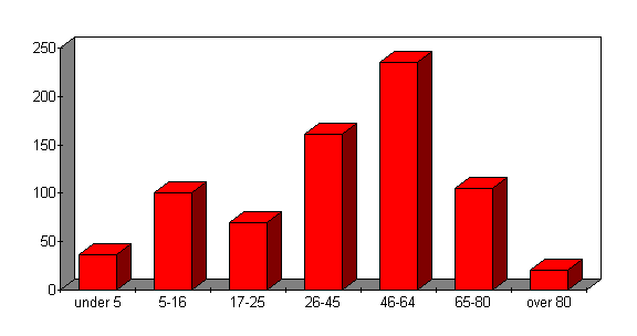 Notwithstanding this the 46-64 age group is the most numerous while the