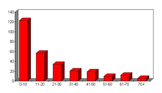 in the area for less than 21 years and 107 (38%) had lived here less than 11