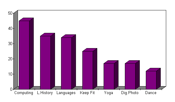 leisure classes if they were provided locally and what time of the day they